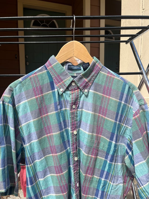 Vtg Lands End Large Indian Madras Short Sleeve Shirt Etsy